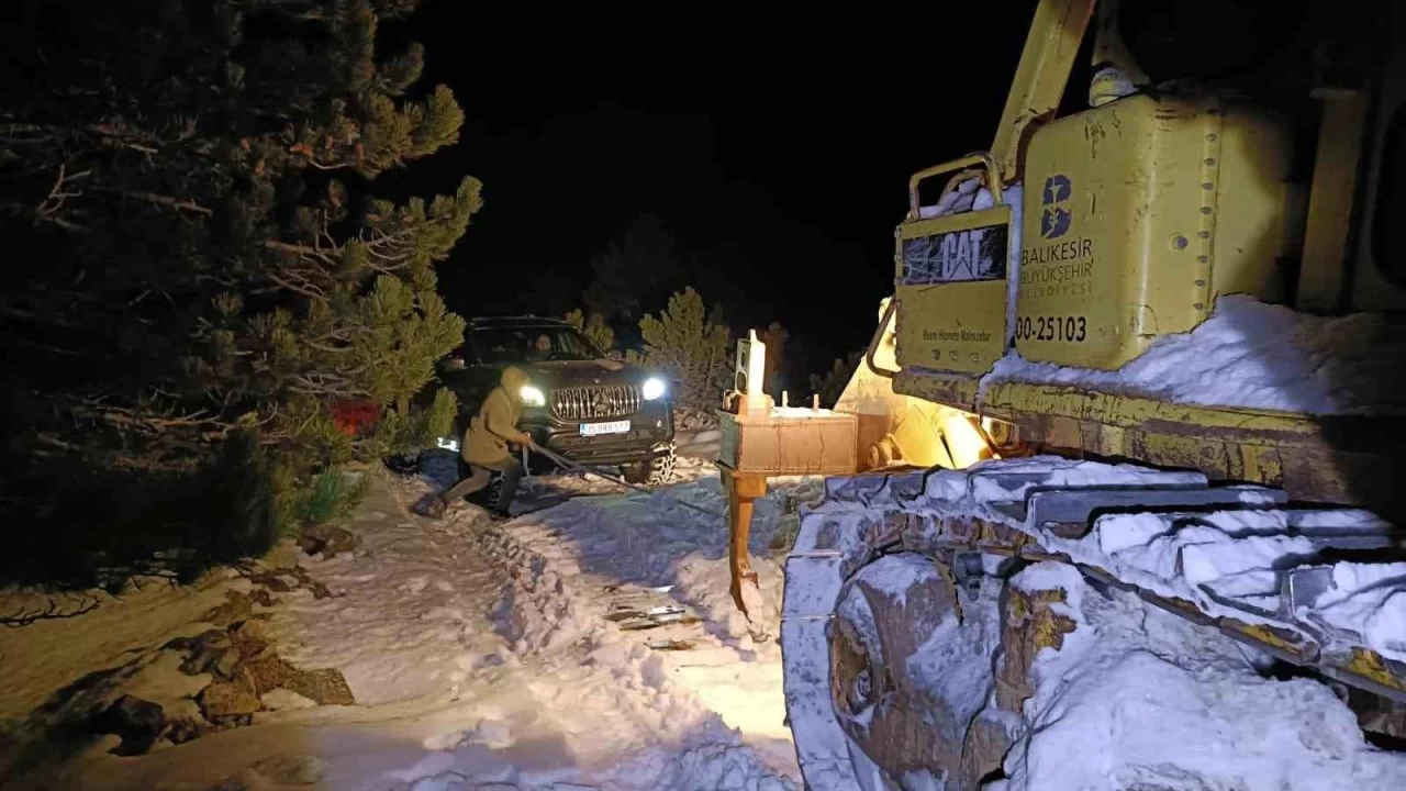 Akşam saatlerinde Kazdağları'nın Sarıkız Tepesi'ne çıkan ve dönüşe geçen Mustafa A. ve Hasan M., kamyonetlerinin karda çamura saplanmasıyla zor durumda kaldı. Bu durumu fark eden vatandaşlar, hemen 112 Acil Yardım Hattı'nı arayarak yardım istediler.