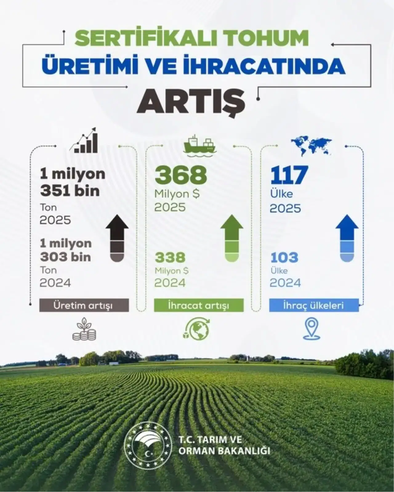 Bakan Yumaklı, sosyal medya hesabından yaptığı açıklamada, sertifikalı tohum üretimindeki artışa dikkat çekti. Türkiye, 2025 itibarıyla 1 milyon 351 bin ton üretim gerçekleştirdi. Bu üretimle hem iç pazarın ihtiyacı karşılanıyor hem de uluslararası pazarlarda Türkiye’nin rekabet gücü artıyor.