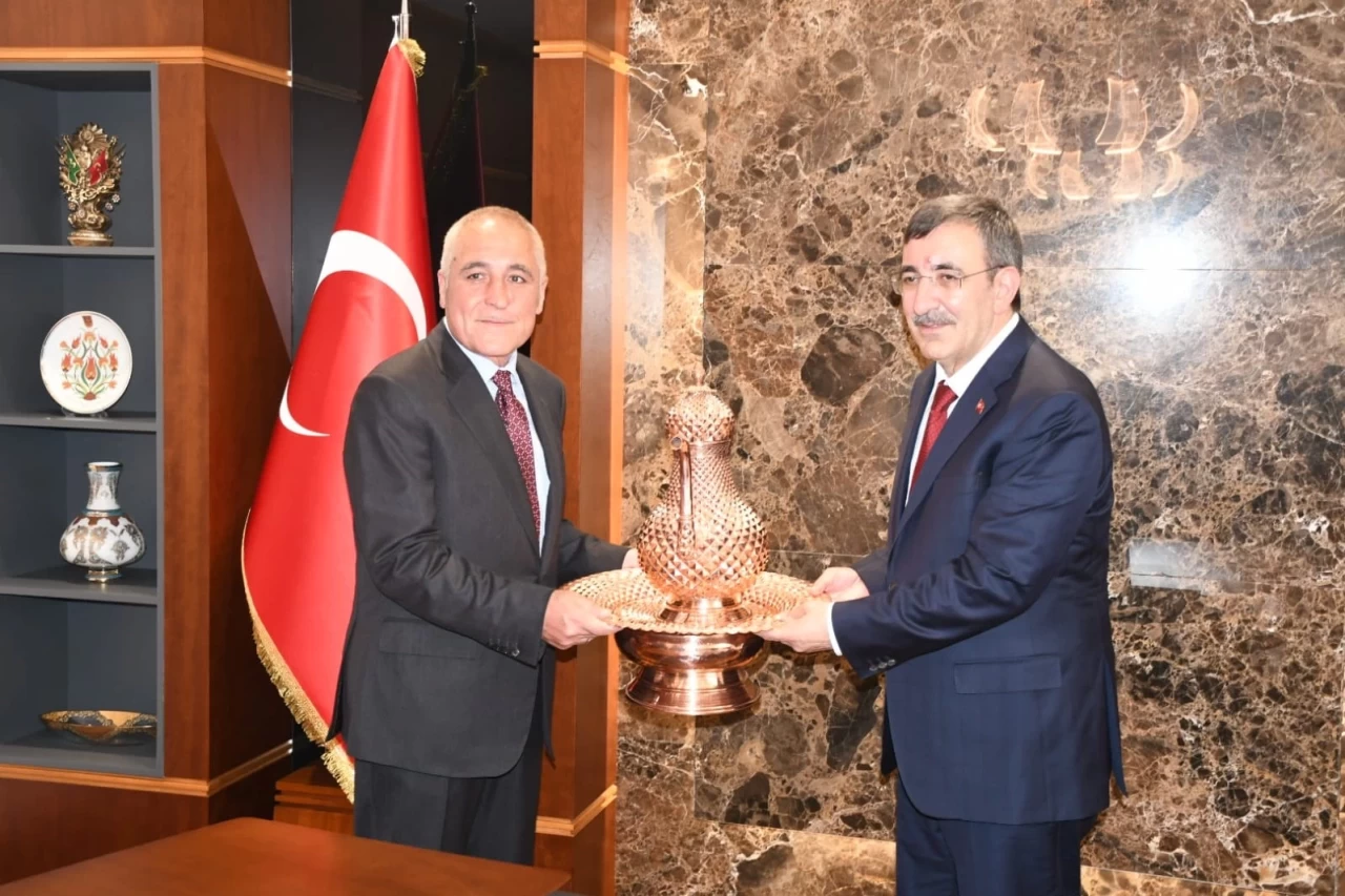 Cumhurbaşkanı Yardımcısı Cevdet Yılmaz, Gaziantep programı kapsamında Organize Sanayi Bölge Müdürlüğünde iş dünyasının temsilcileri ile bir araya geldi.
