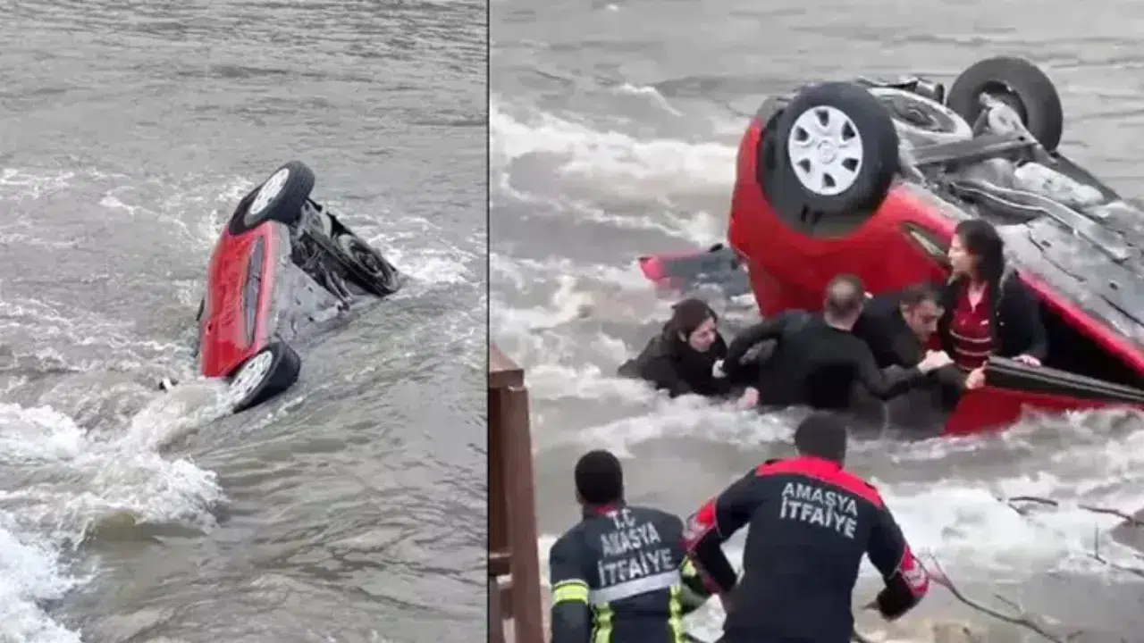 Çarpışmanın etkisiyle savrulan otomobil, köprünün demir korkuluklarını kırarak Yeşilırmak’a düştü ve nehirde yaklaşık 50 metre sürüklendi. Araç ters dönerken çevredekilerin ihbarı üzerine olay yerine Amasya Belediyesi İtfaiye Sualtı Kurtarma ekipleri, polis, AFAD ve sağlık ekipleri sevk edildi.
