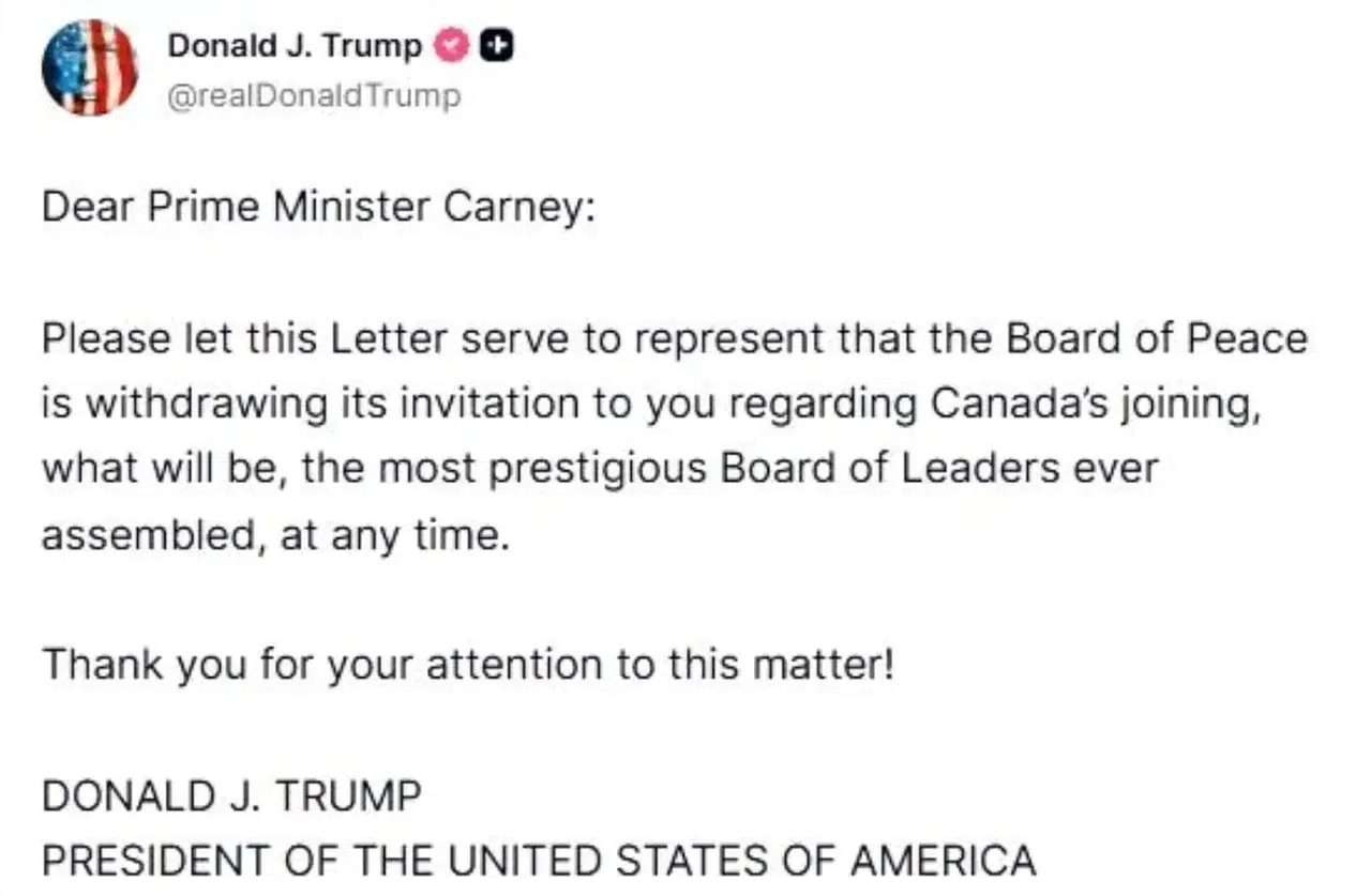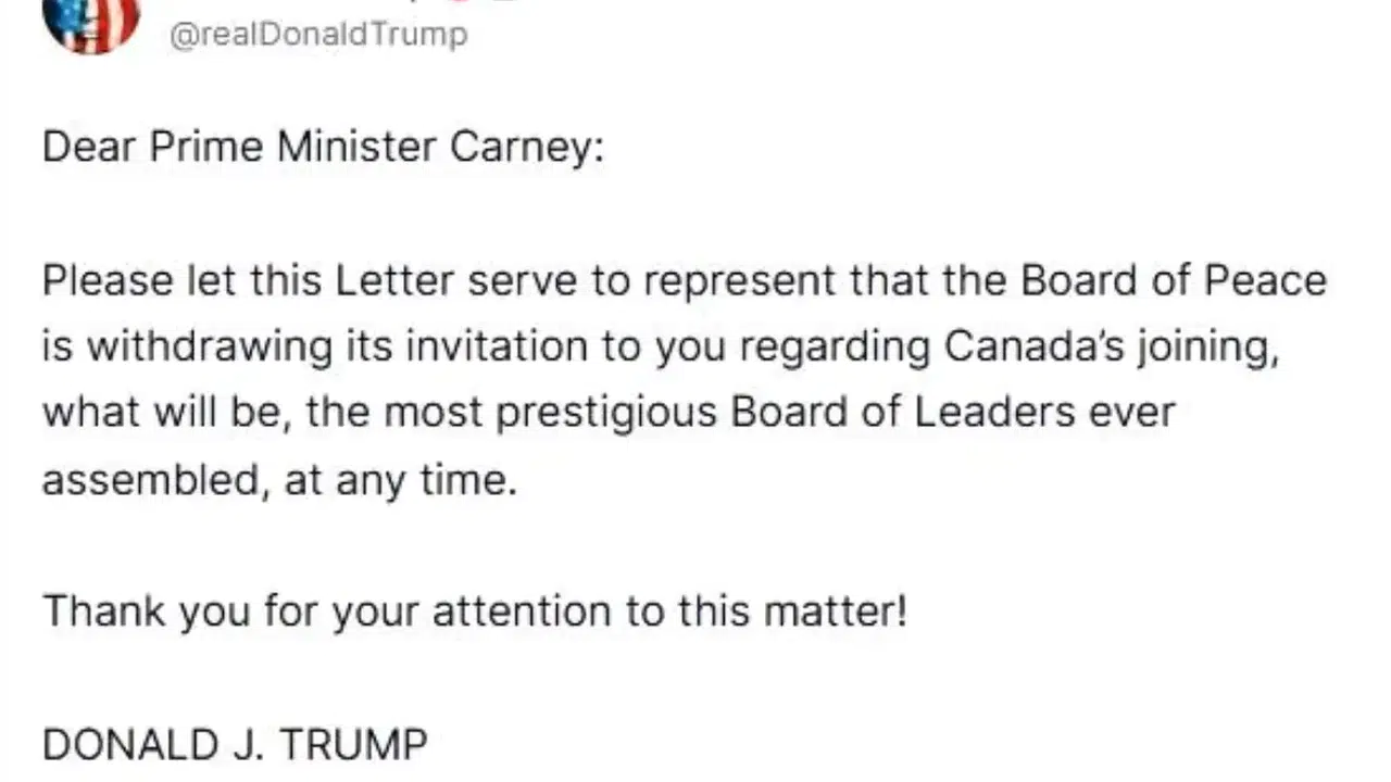 Trump, paylaşımında doğrudan Mark Carney’e hitap ederek, Gazze Barış Kurulu’na katılım için yapılan resmi davetin iptal edildiğini bildirdi. Mesajında, “Lütfen bu bildirimi, Kanada’nın Gazze Barış Kurulu’na katılımına ilişkin daha önce iletilen davetin geri çekildiğine dair resmi bilgilendirme olarak kabul edin” ifadelerine yer verdi. Trump, kurulun küresel ölçekte büyük bir prestije sahip olacağını da özellikle vurguladı.