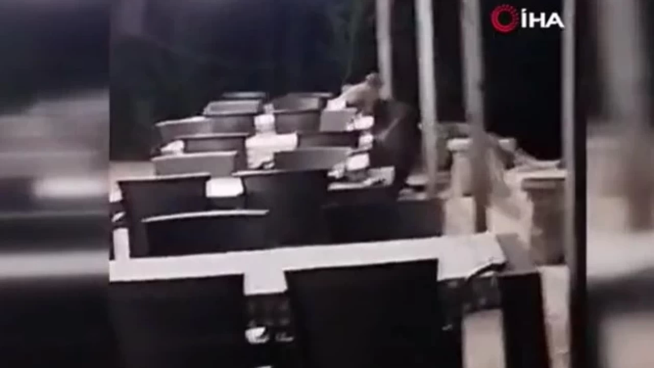 Restoran bahçesinde gezinen aç ayı, masaların üzerinde bir şeyler aradı. Ancak yiyecek bulamayan ayı, kısa bir süre sonra restoran bahçesinden uzaklaştı ve karanlıkta kayboldu. O anlar, çevredeki vatandaşlar tarafından büyük bir şaşkınlıkla izlendi.