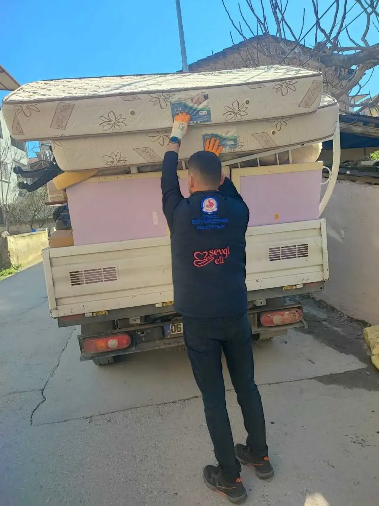 Bir süre önce Sarayköy ilçesinde meydana gelen talihsiz olayda, Y.D. isimli annenin iki çocuğuyla birlikte yaşadığı ev, çıkan yangın sonucu kullanılamaz hale geldi. Tüm eşyaları küle dönen aile, yakınlarının yanına sığınmak zorunda kaldı. Denizli Büyükşehir Belediyesi Sevgi Eli ekipleri, hayırseverlerin bağışladığı eşyalarla aileye destek oldu. Buzdolabından çamaşır makinesine, koltuk takımlarından elbise dolaplarına, hatta çocukların oyuncaklarına kadar her ayrıntı titizlikle düşünüldü. Ayrıca aileye gıda ve giyim desteği de sağlandı.