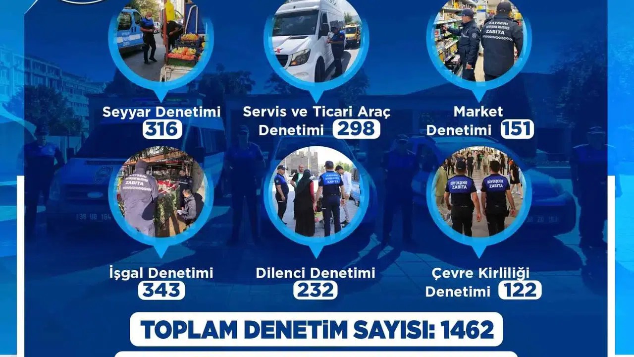 Kayseri Büyükşehir Belediyesi Zabıta Daire Başkanlığı, 2026 yılının ilk ayında şehir genelinde bin 462 denetim yaparak 161 yasal işlem gerçekleştirdi. Denetimler, kentte huzur, güvenlik ve düzenin sağlanmasına yönelik titizlikle yürütüldü.