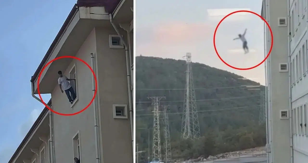 İtfaiye ekipleri tarafından olası bir düşüşe karşı güvenlik önlemi olarak hava yastığı açıldı. Ancak tüm çabalara rağmen genç, bulunduğu noktadan kendini boşluğa bıraktı.