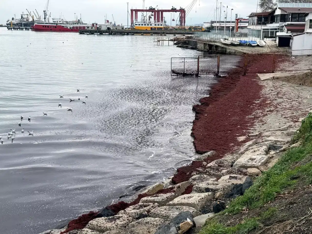 Marmara Denizi açıklarında esen poyraz, deniz yüzeyindeki ve dipteki organik maddeleri kıyıya taşıdı. Sahil hattında biriken yosunlar, bazı bölgelerde kalın tabakalar oluşturdu ve sahil kırmızı renge büründü.