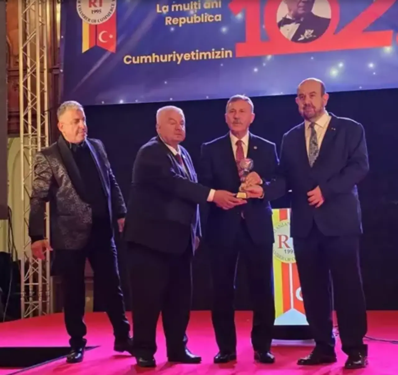 Onur Şirketler Grubu’nun İmtiyaz Sahibi Gökhan Hacıoğlu, “Bugün ki etkinlik gerçekten çok güzel. Tamer Atalay çok büyük bir başarıya imza attı. Zaten 30 yıllık bir süreç. 30 yıldır hem kuruluşunu yapmıştır hem de başkanlığını yapmıştır. Türkiye Cumhuriyeti’nin kuruluş yıl dönümü kutlandı. Başta Gazi Mustafa Kemal Atatürk’ü ve tüm şehitleri saygıyla anıyoruz. Çok güzel bir gece oldu. Romanya’nın geçmiş cumhurbaşkanları ve başbakanları da katıldı. Bizim Ticaret Bakanımız Ömer Bolat katılım sağladı. Türkiye ve Romanya arasında sosyokültürel ve ticari anlamda çok güçlü ve kuvvetli bir köprü oldu” dedi.