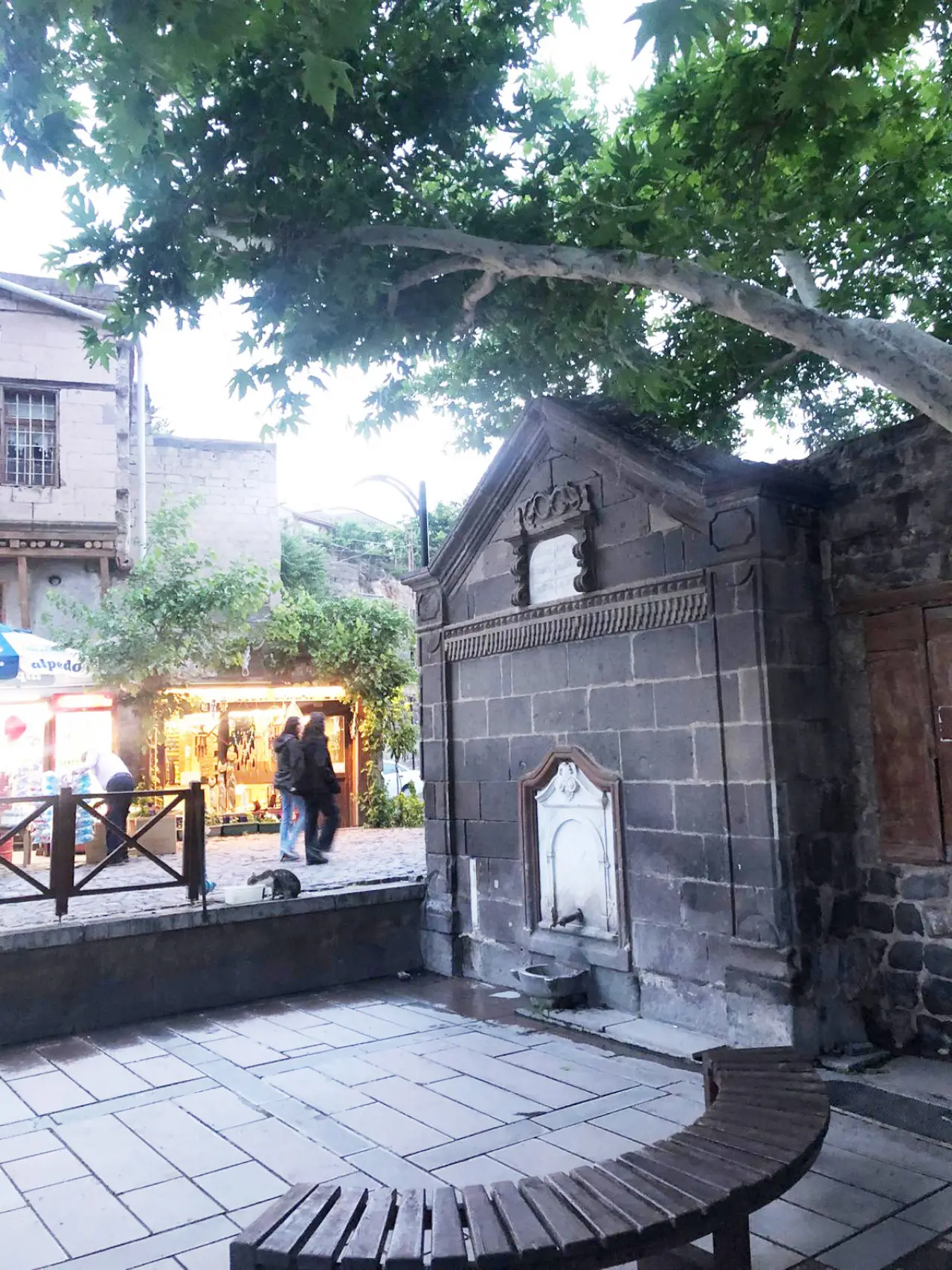 Taş evler şimdiki gibi tek düze ve kimliksiz değil. Asma balkonları, çatılarında yağmur sularını tahliye eden arslan ağzı, zincirli su olukları, oldukça mahrem ama birbirinden ayrı düşmeyen komşu duvarları, konaklar… Müslüman’ı ve Hıristiyanı’yla farklı din ve kültürlerin iç içe huzurla yaşadığı kilit taşlarla döşenmiş sokaklardan geçip sona geldiğimizde bir sürpriz daha bekliyor bizi.