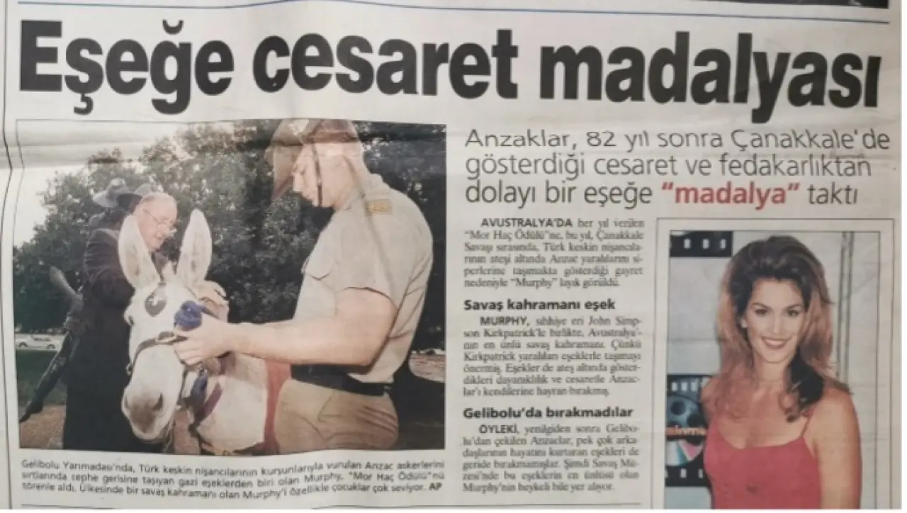 Anzaklar, 82 yıl sonra Çanakkale'de gösterdiği cesaret ve fedakarlıktan dolayı bir eşeğe "madalya" taktı. Avustralya’da her yıl verilen "Mor Haç Ödülü"ne, bu yıl, Çanakkale Savaşı sırasında, Türk keskin nişancılarının ateşi altında Anzac yaralılarını siperlerine taşımakta gösterdiği gayret nedeniyle "Murphy" layık görüldü.