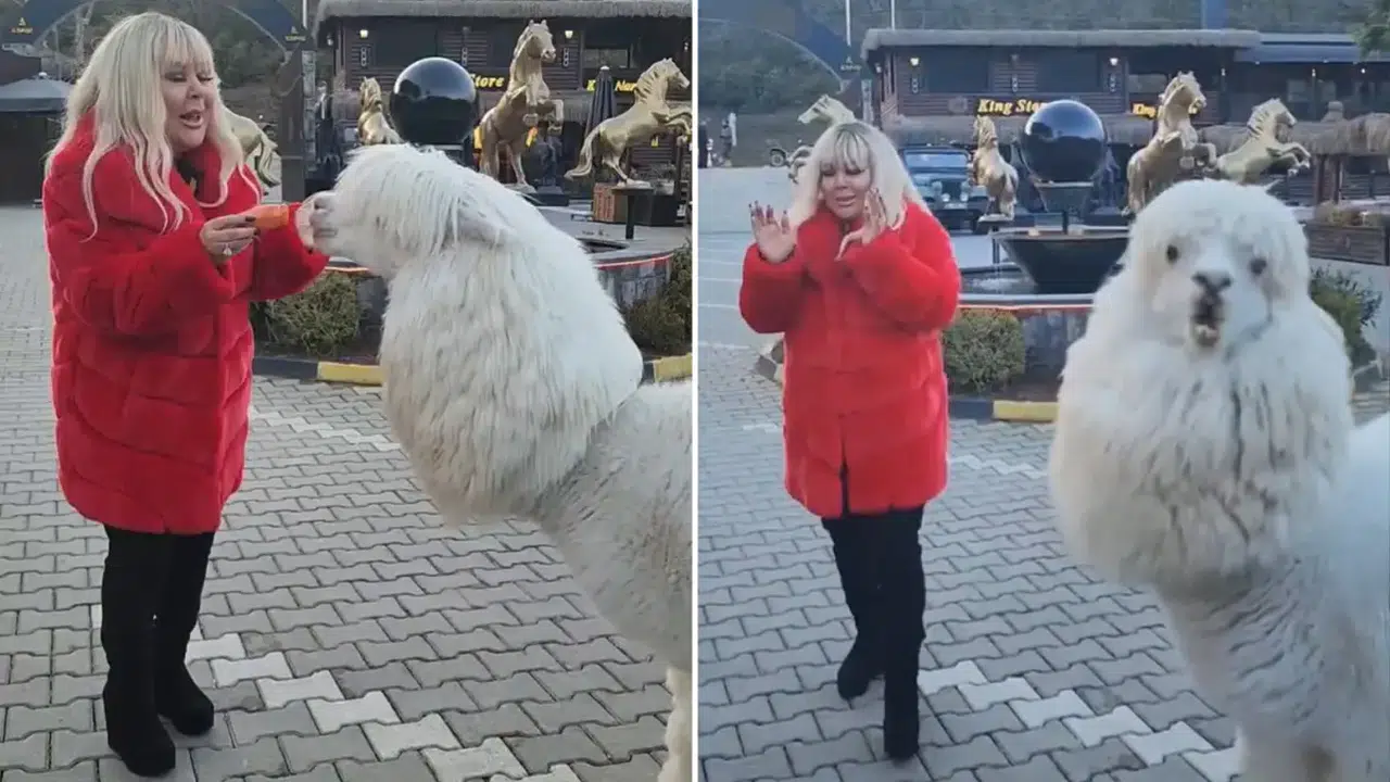 Ünlü şarkıcı Safiye Soyman, uzun süredir birlikte olduğu hayat arkadaşı Faik Öztürk ile katıldığı bir çiftlik gezisinde hayvanlarla yakından ilgilenirken beklenmedik bir sürprizle karşılaştı. Elleriyle beslediği alpaka, aniden Soyman’ın yüzüne tükürünce ünlü sanatçı kısa süreli şaşkınlık yaşadı.